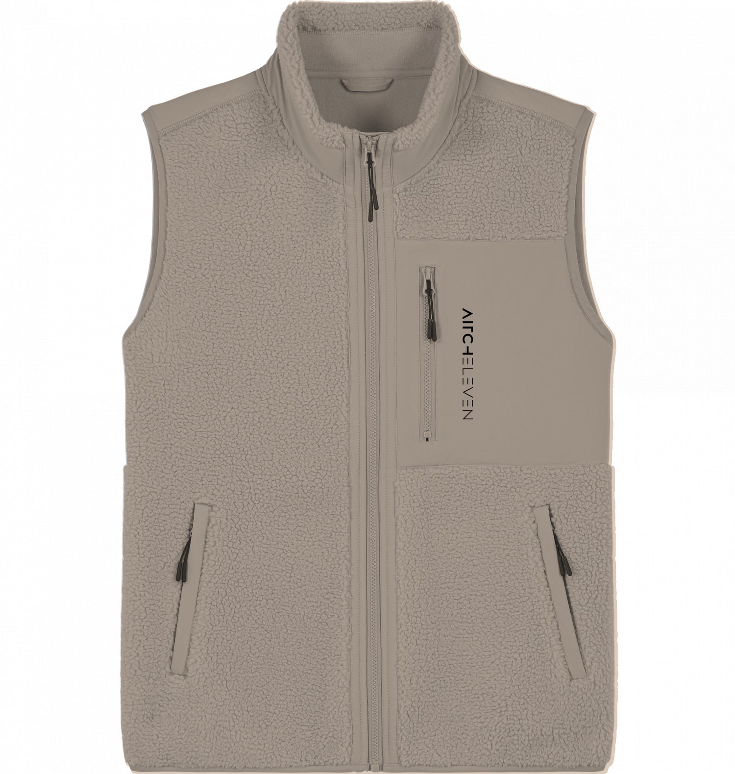 Unisex-Sherpa-Jacke - Ärmellos | Elastische, recycelte Einfassung an Bündchen und Saum | Innere Rückenhals-Einfassung aus recyceltem Material und Nackenband |Vordere seitliche Kontrast-Softshell-Paspeltaschen mit verdecktem Reißverschluss | Kontrast-Softshell-Stoff an Tasche, Rückenpasse und äußerem Kragenband